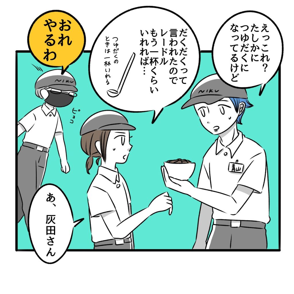 おすすめ記事牛丼屋の変な奴ら〜恋愛編2〜牛丼屋の変な奴ら〜恋愛編①〜牛丼屋の変な奴ら〜超多忙フリーター編47〜牛丼屋の変な奴ら〜超多忙フリーター編46〜牛丼屋の変な奴ら〜超多忙フリーター編45〜 牛丼屋の変な奴ら⑧〜変な客〜 2025.08.07 牛丼屋の変な奴ら⑧ 広告 広告 広告 あとがき いまはどうかわかりませんが、つゆだくだくって言えばつゆたくさんいれてくれます。ここまでたっぷり入れてくれるところは…なかなかないかもしれません。 23