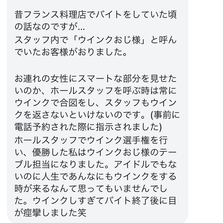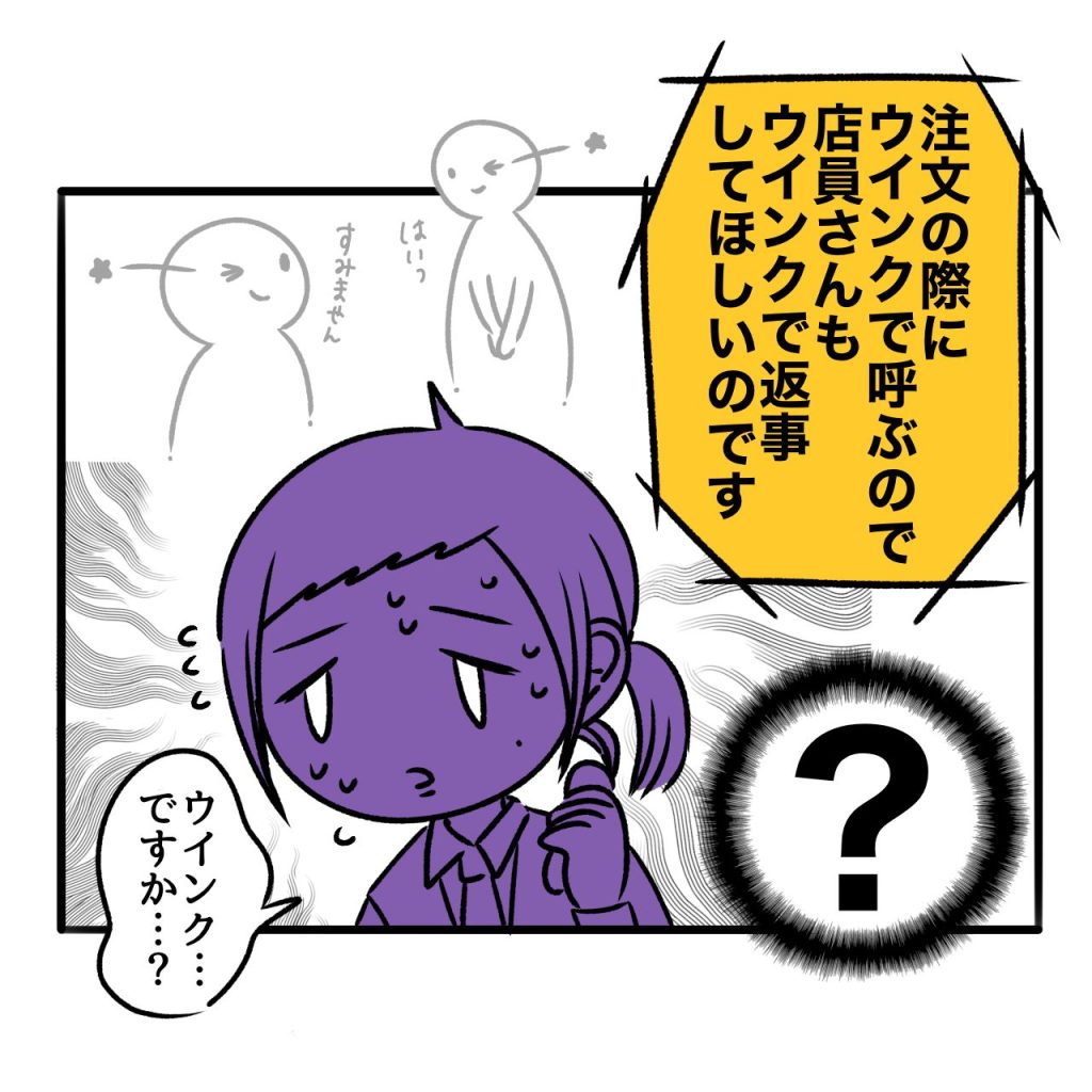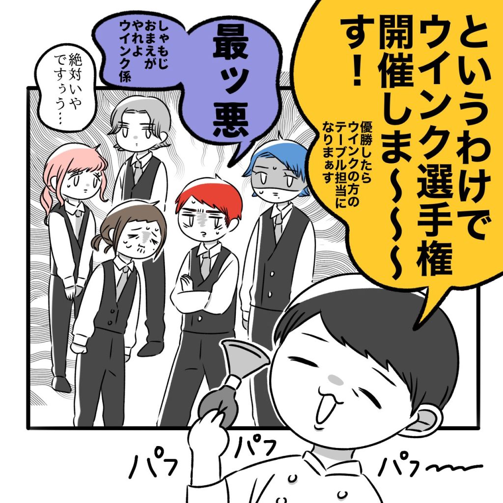 おすすめ記事牛丼屋の変な奴ら〜恋愛編2〜牛丼屋の変な奴ら〜恋愛編①〜牛丼屋の変な奴ら〜超多忙フリーター編47〜牛丼屋の変な奴ら〜超多忙フリーター編46〜牛丼屋の変な奴ら〜超多忙フリーター編45〜 変な奴らエピソード〜ウインクおじ様〜 2025.08.29 変な奴らエピソード〜ウインクおじ様〜 広告 広告 広告 namiさんありがとうございました! 牛丼屋の店員たちのウインクが描きたくて選ばせていただきました。笑ウインクおじ様…癖強ォ…… 72